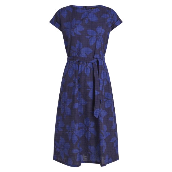 Denne Betty dress fra King Louie er en flot kjole i et mørkeblå print "Beacon blue" med store blomster på. Printet bringer nærmest tankerne hen på ferieminder, imens den mørkeblå farve giver kjolen et elegant og klassisk look. Om livet kan det medfølgende bælte bindes for at give forskellige looks. Den har samtidig lommer i siden, korte ærmer, imens ryggens øvre del kan åbnes med knapper.