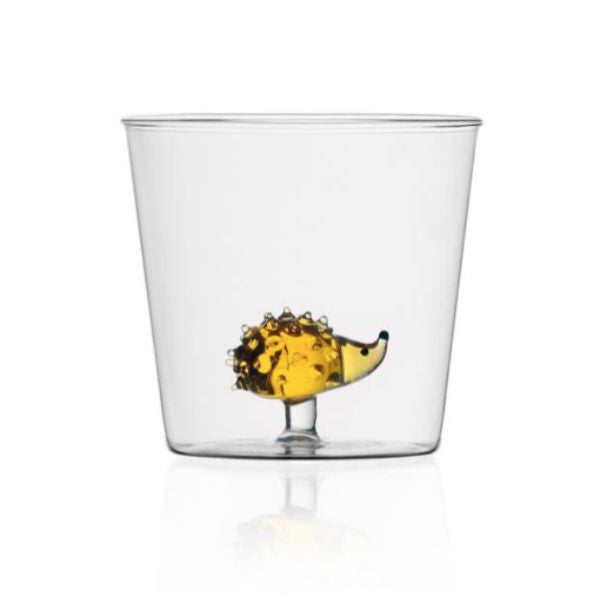 Smukt håndlavet glas med et fint lille pindsvin indeni fra italienske Ichendorf. Glasset er støbt og den lille figur er varmebehandlet. Glasset er tyndt og fint og er let at holde ved. Glasset måler 8*8,5cm og tåler opvaskemaskine. Glasset sendes afsted indpakket i dens egen boks, som passer på glasset under fragt.