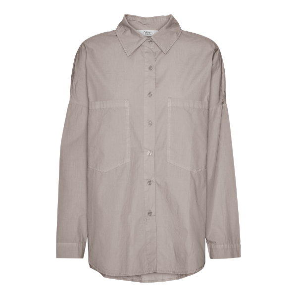 Rosetta er en cool let oversize skjorte i bomuld fra danske Amaze Cph, som her kommer i en grå nuance kaldet fango. Den har også store lommer på fronten, som er med til at give den sit cool look. Den er super flot med en løs strik over, når det er lidt køligere. Kan let styles over et par bukser eller med en nederdel.