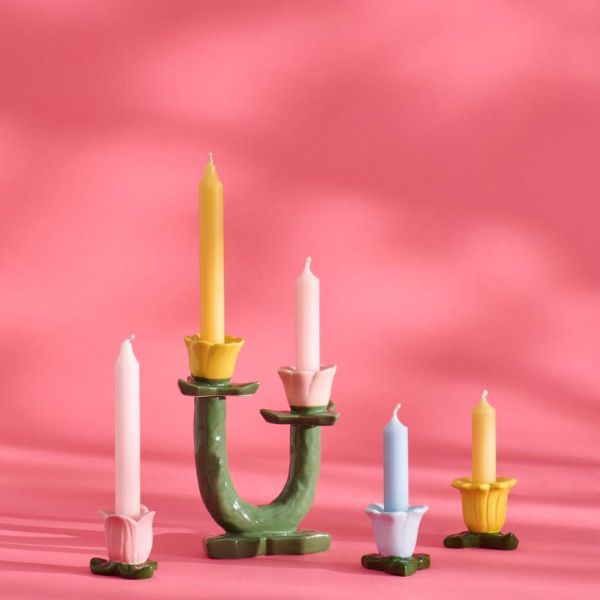 Disse søde små stager kommer formet som en lille blomst i flere forskellige farver. De egner sig til almindelige stearinlys som eksempelvis bedelys eller kronelys. Vælg mellem tre forskellige farver eller match flere.